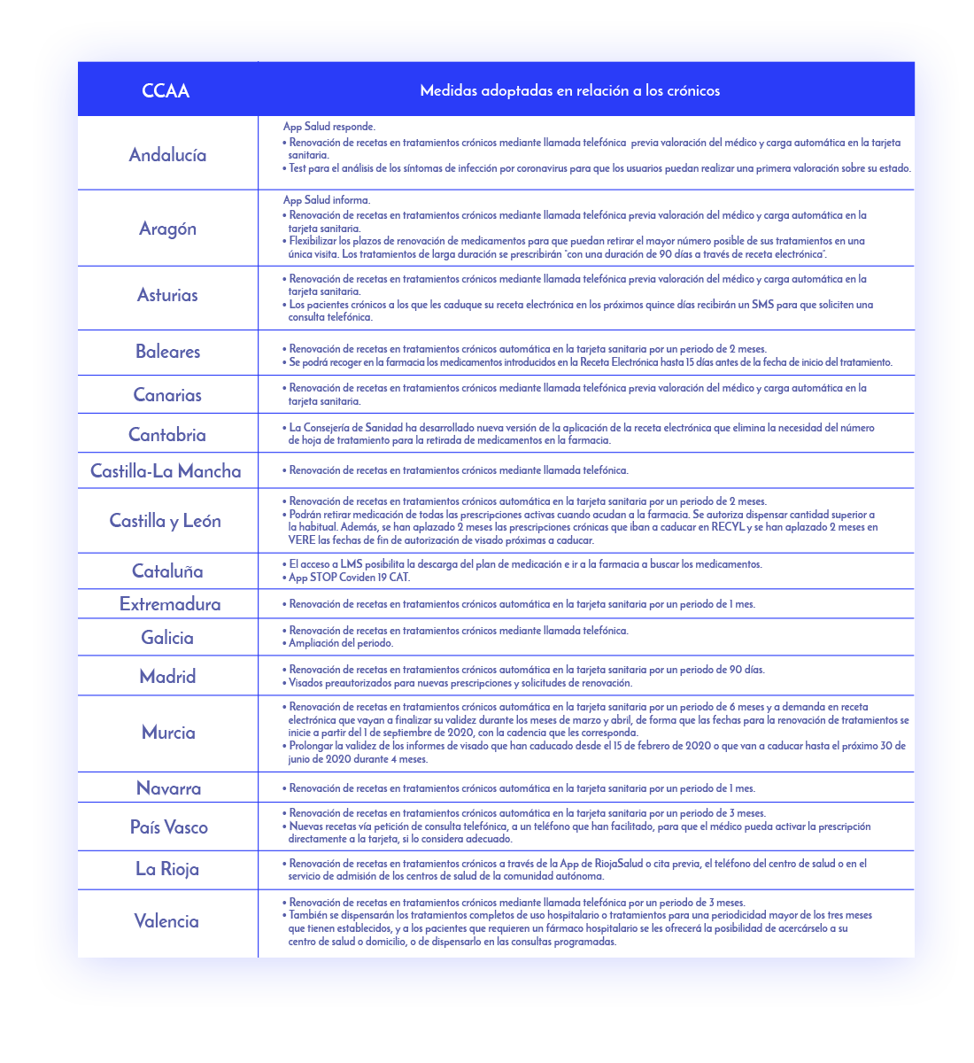 En primer lugar, si nos centramos en la renovación de recetas para tratamientos crónicos y medicamentos sometidos a visado, cada comunidad autónoma ha marcado unos pasos a seguir.